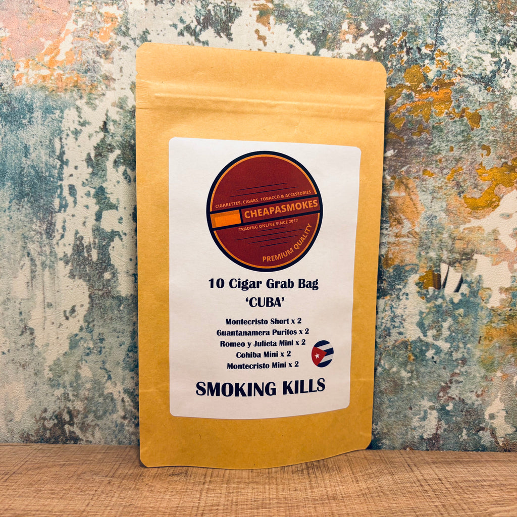 Experience the unmistakable flavour of Cuba with our Cuban Cigar Grab Bag – 10 Sampler Cigars. Perfect for cigar lovers and collectors alike, this exclusive selection brings together some of the most iconic Cuban names in one convenient pack.